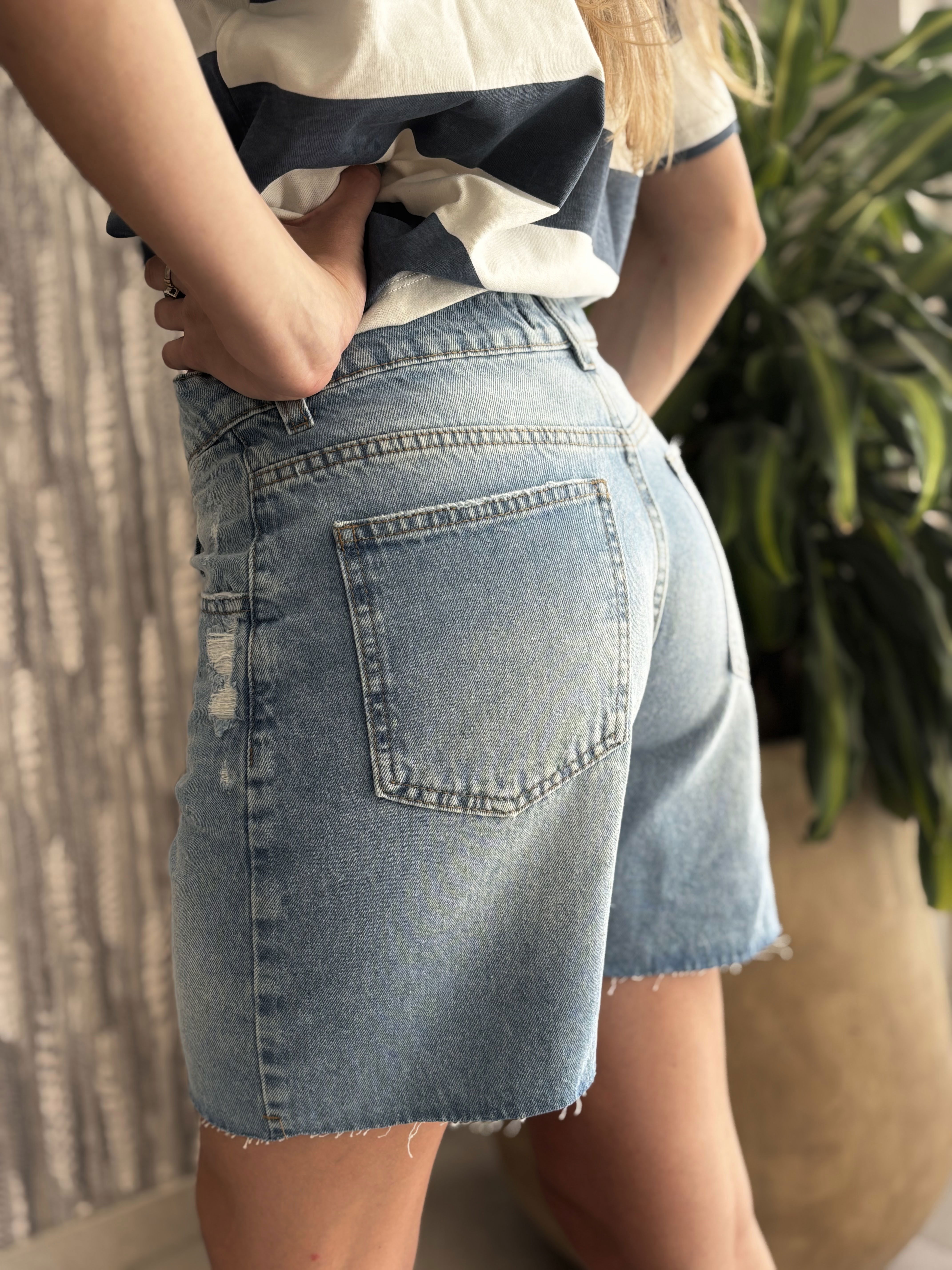 Short long tipo bermuda, con pequeñas roturas en la parte delantera. Super cool para usar de dia y cancherear tus looks :) Las medidas aproximadas son (estan tomadas sobre una superficie plana, de lado a lado, no es la circunferencia):