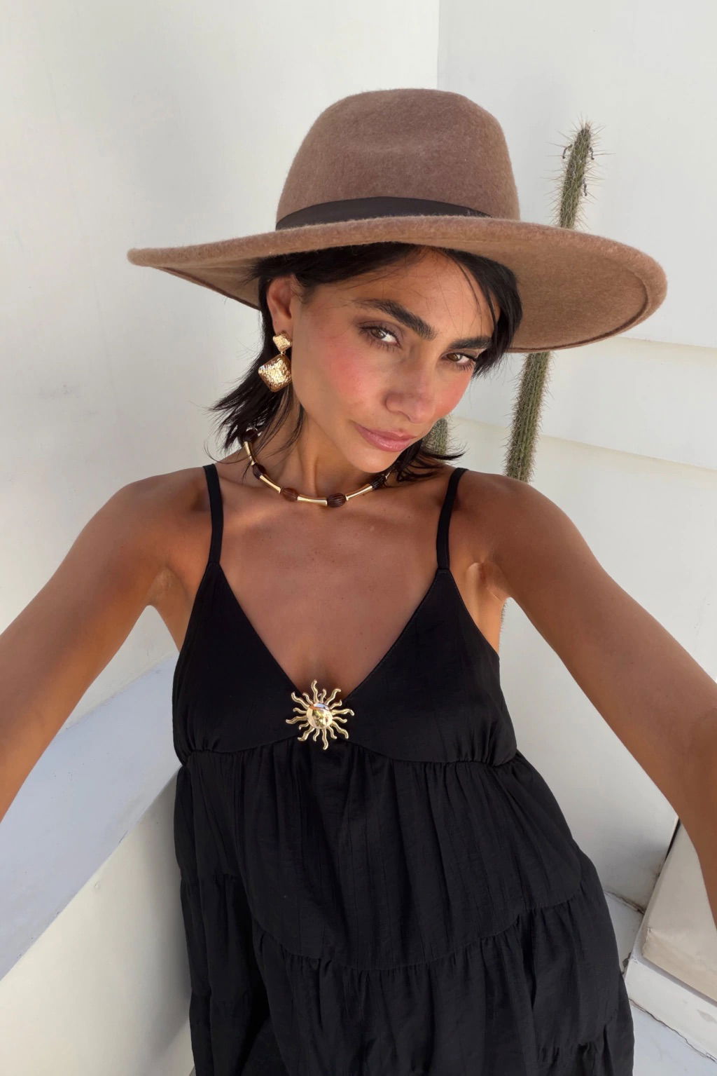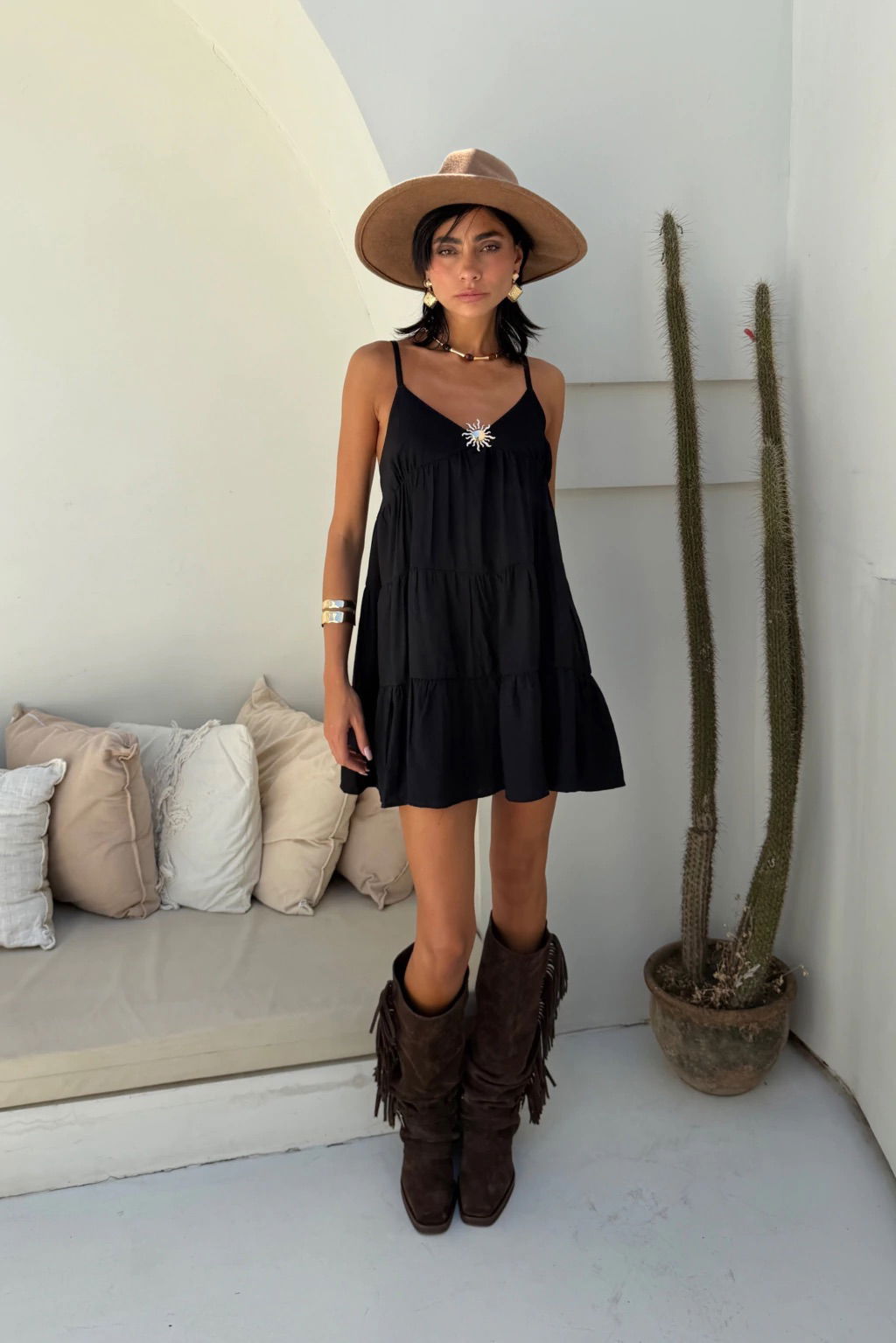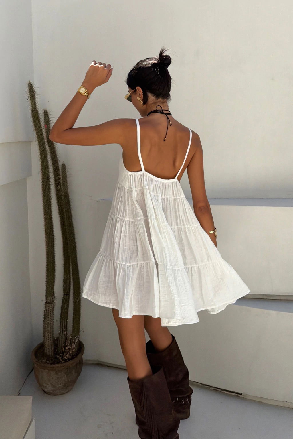 Vestido de lino con aplique en la parte fronta, es talle unico las medidas aproximadas son:- Circunferencia de sisa: 95 cm.- Largo: 83 cm.