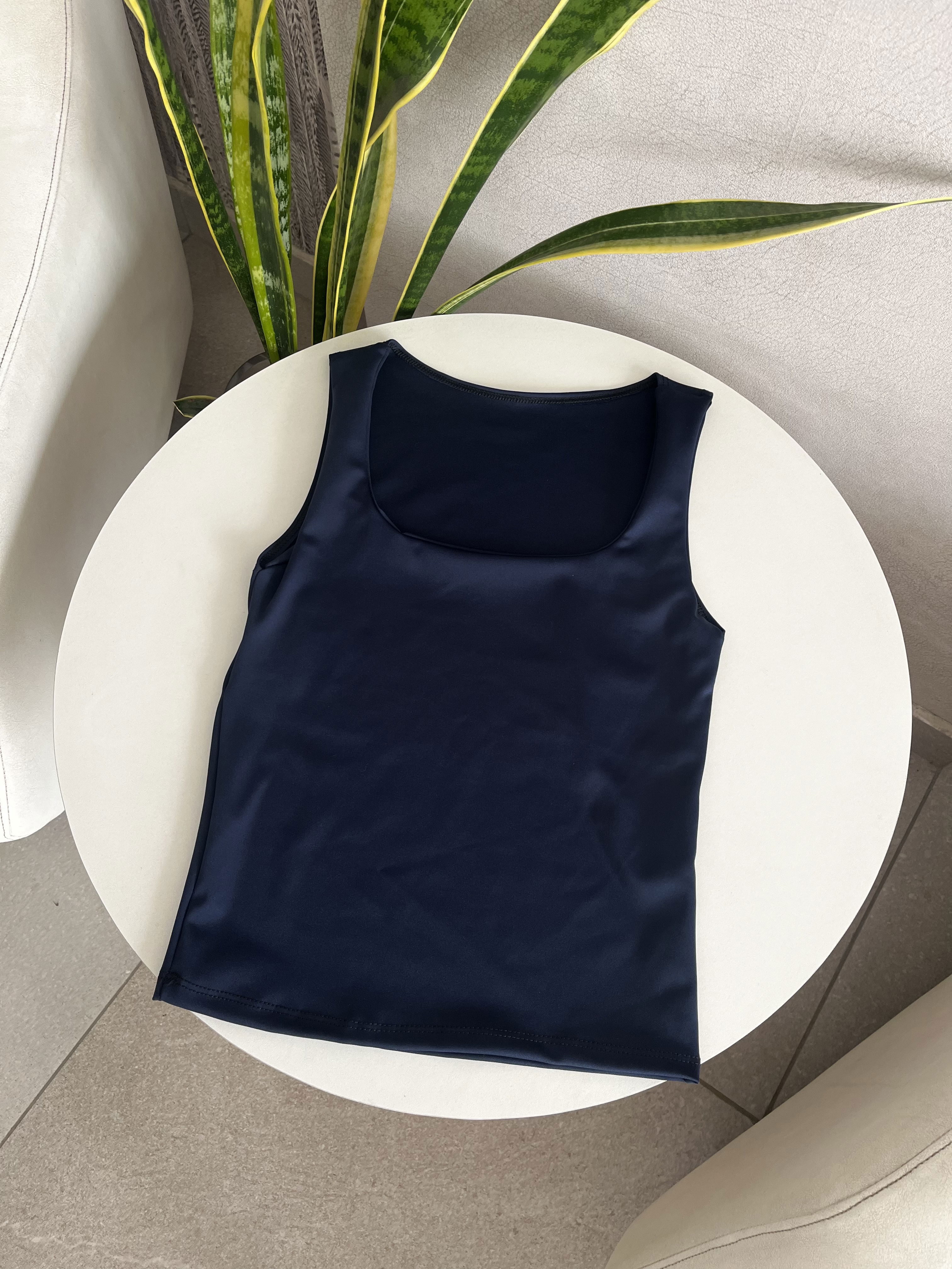 Top de microfibra ribb elastizada, con doble tela en todo el torso, de corte boxy, con escote cuadrado. Es larguito y al cuerpo, pero la tela es super elastizada y cede a un talle M/L. Encontras las medidas acá :)