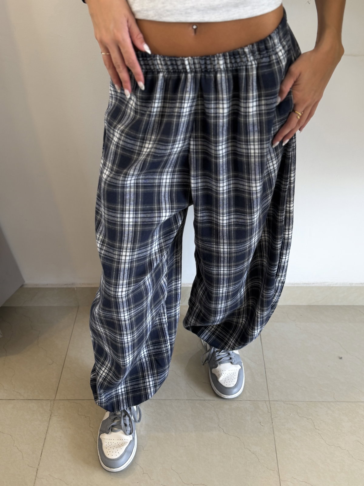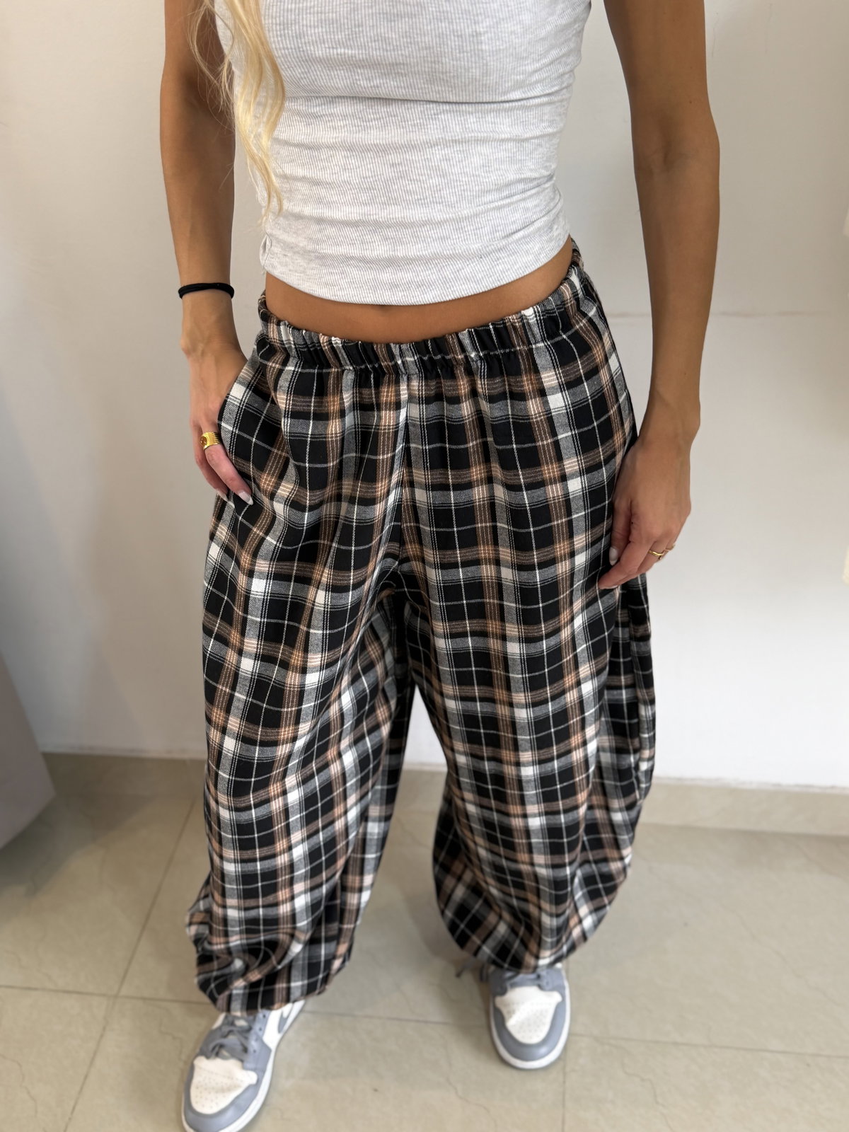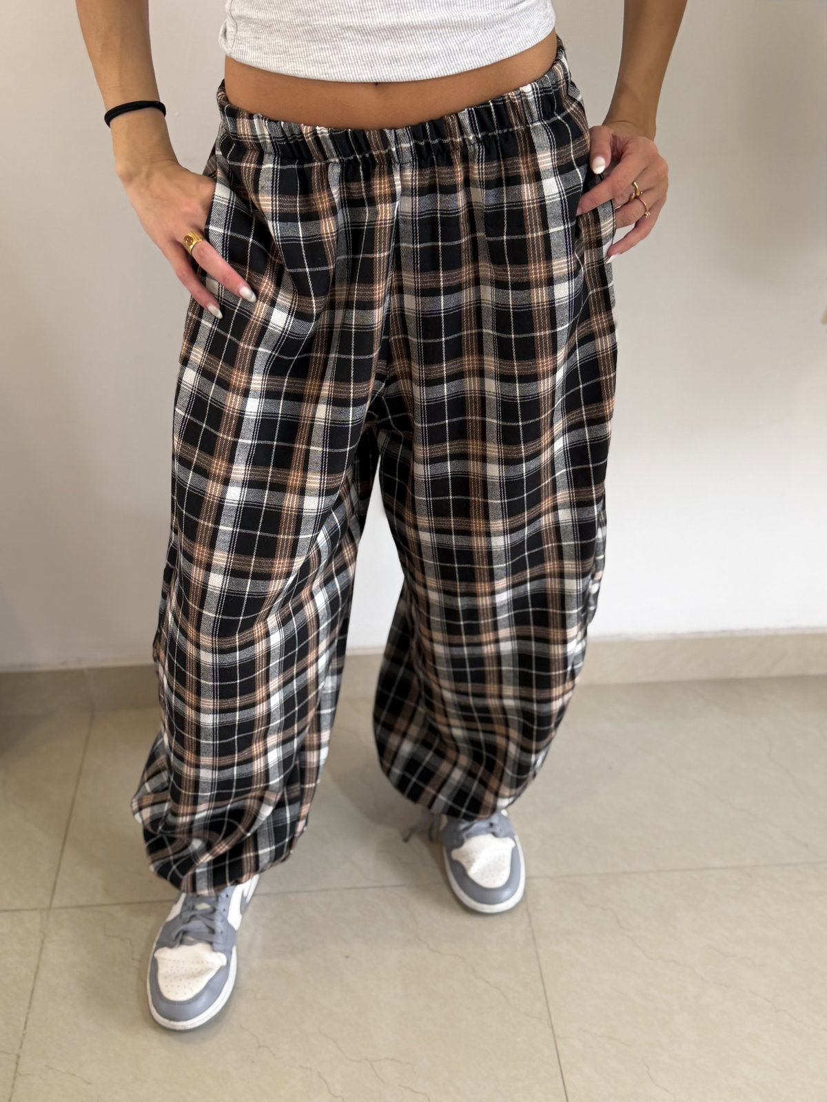 Pantalón balloon estampado tartán, con elástico en la cintura súper amplio va super bien de un S a un L!