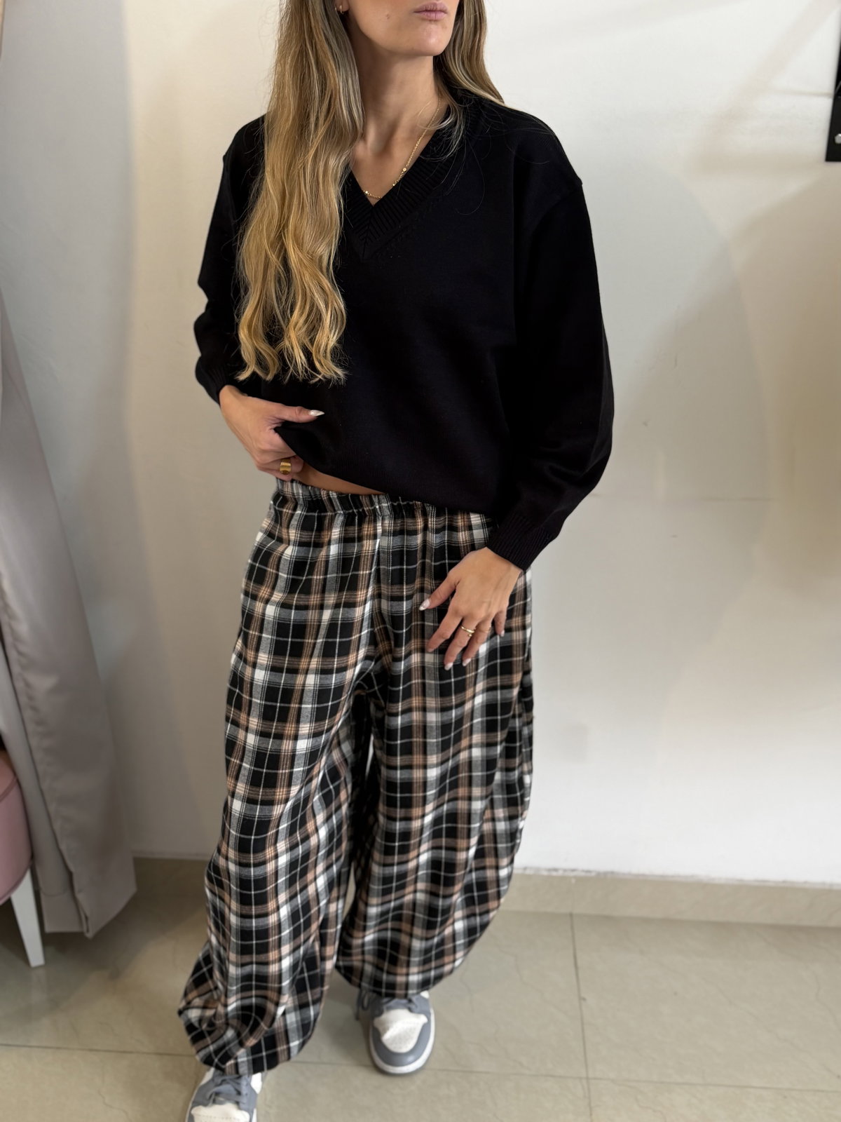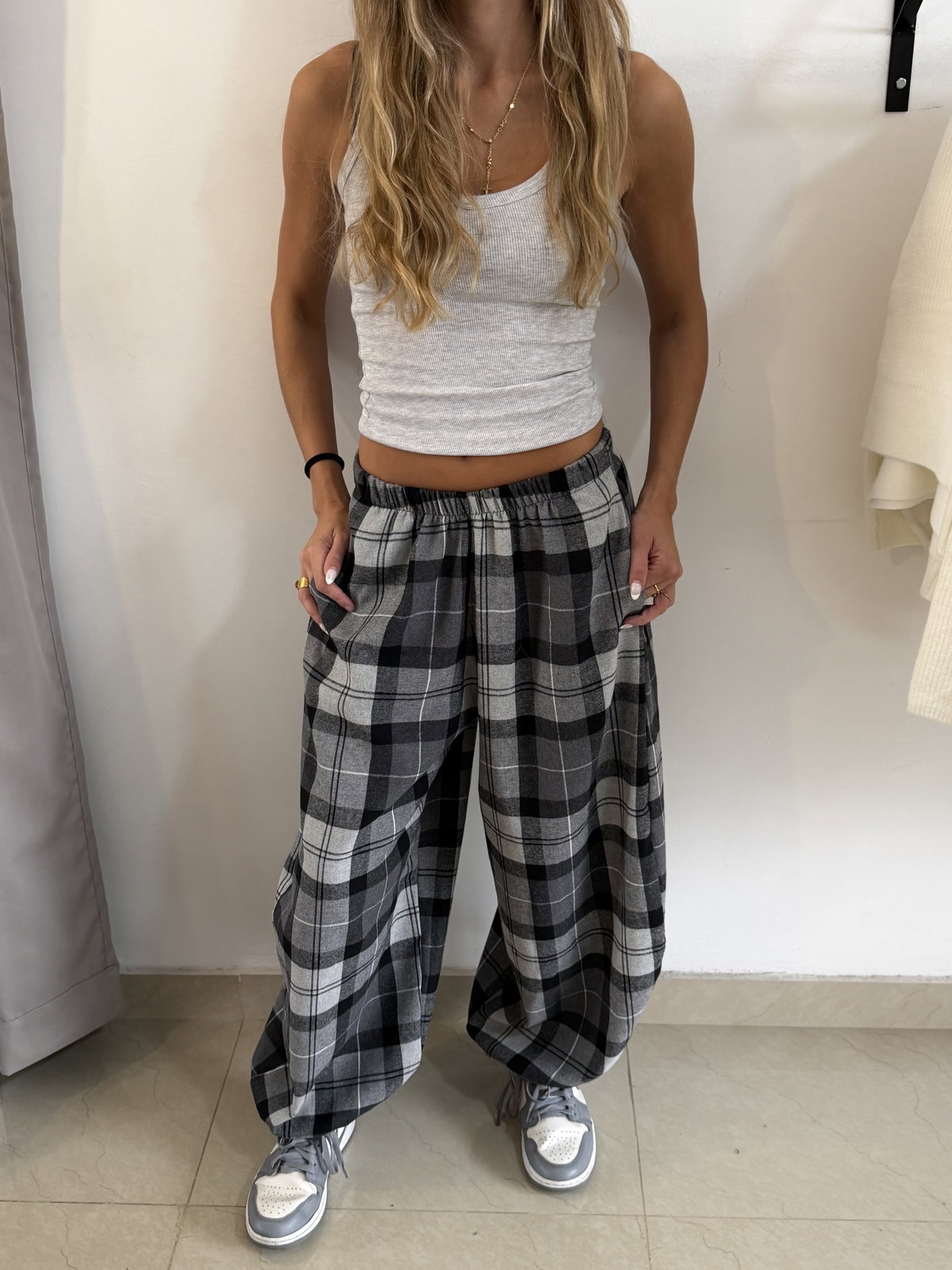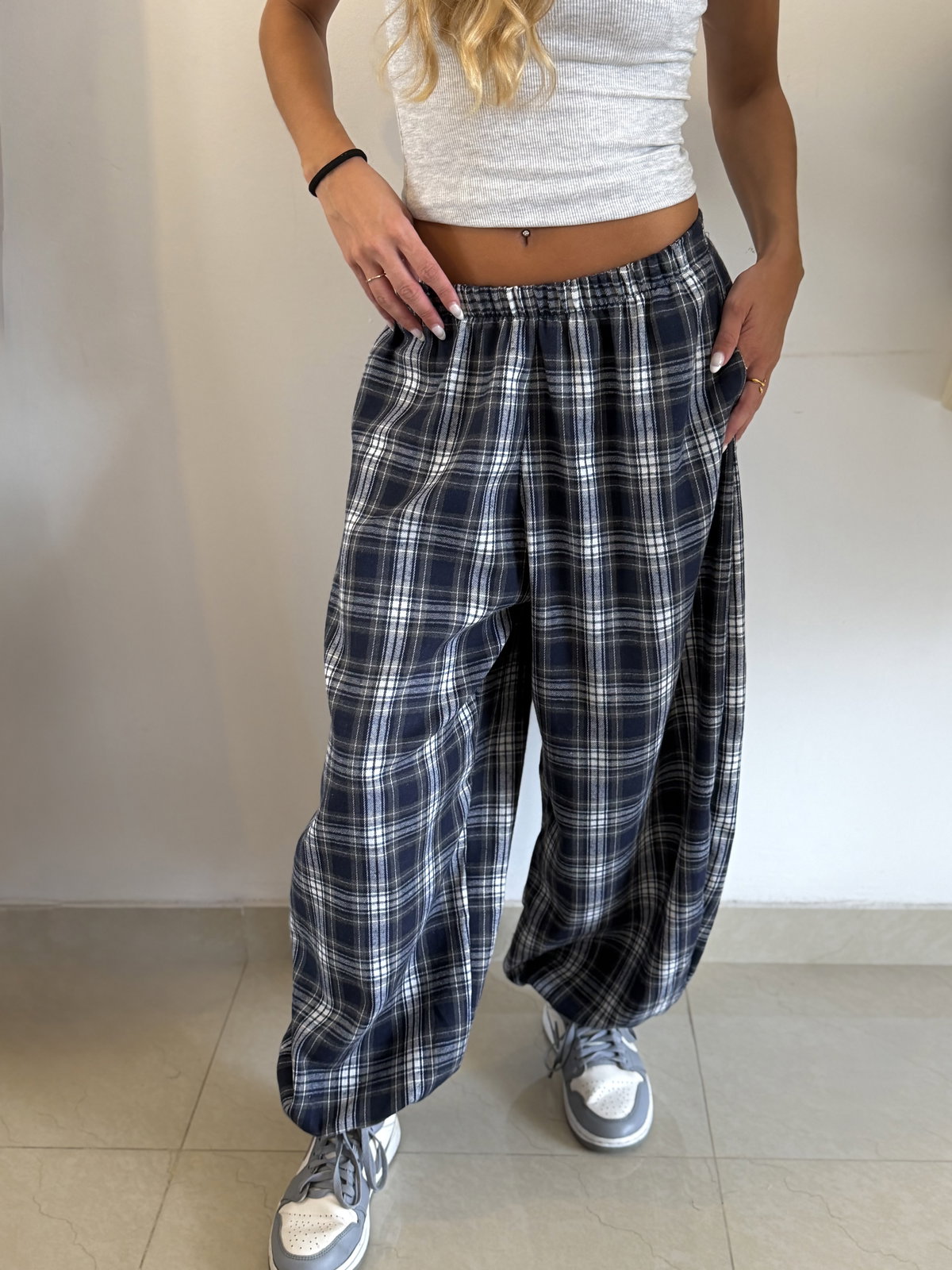 Pantalón balloon estampado tartán, con elástico en la cintura súper amplio va super bien de un S a un L!