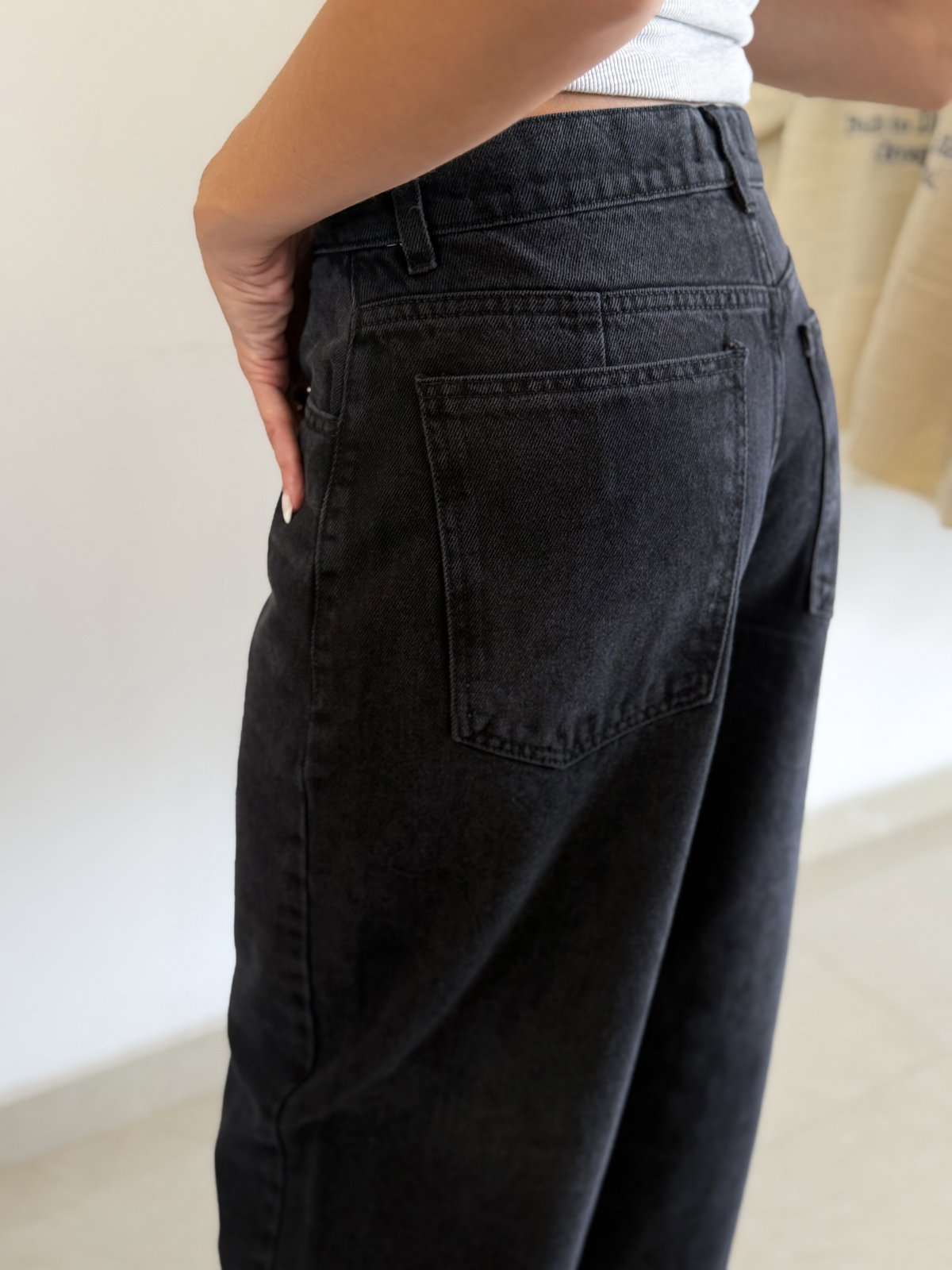 Baggy tiro medio con lavado stone con bigotes y leve localizado.
