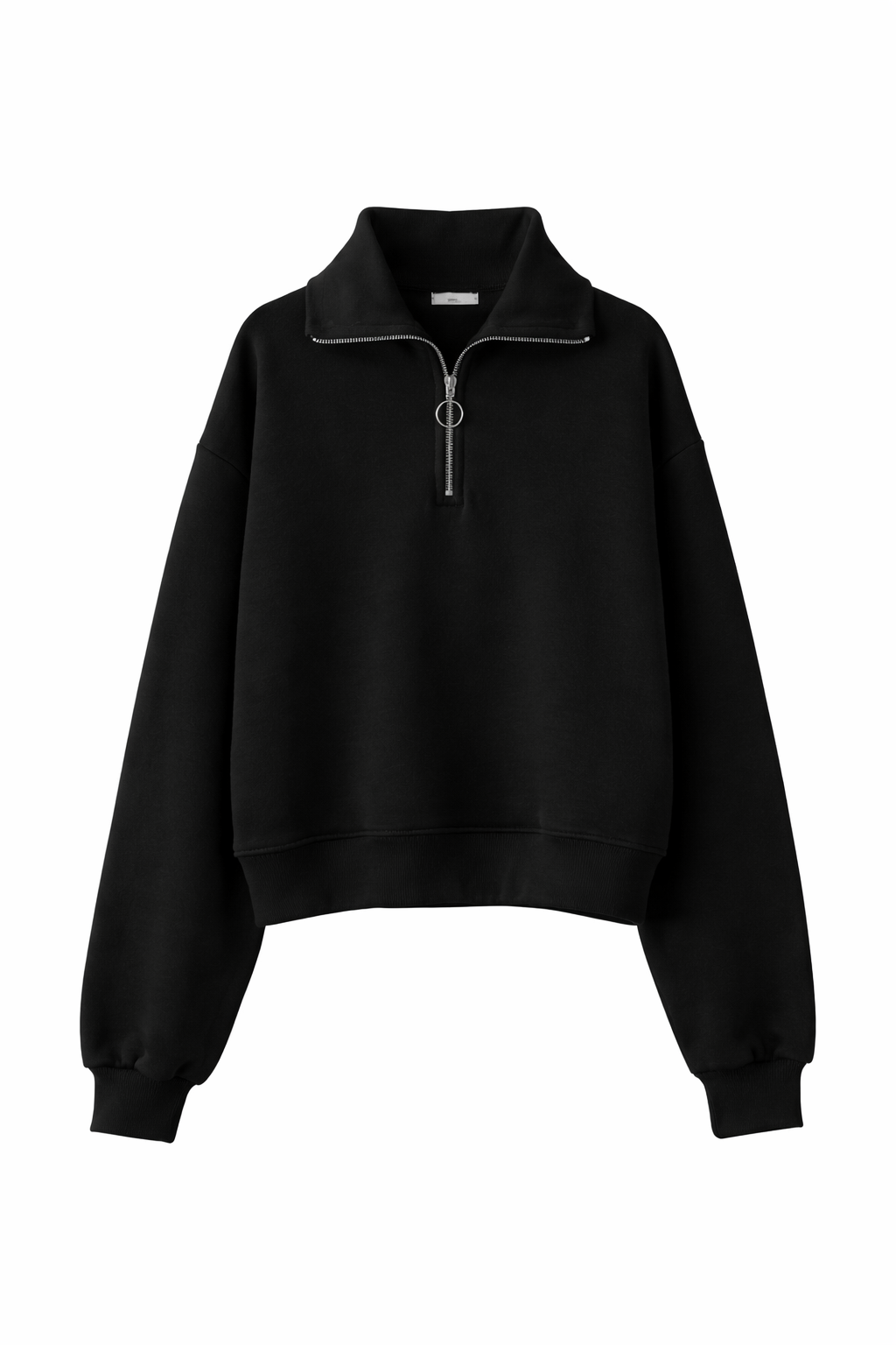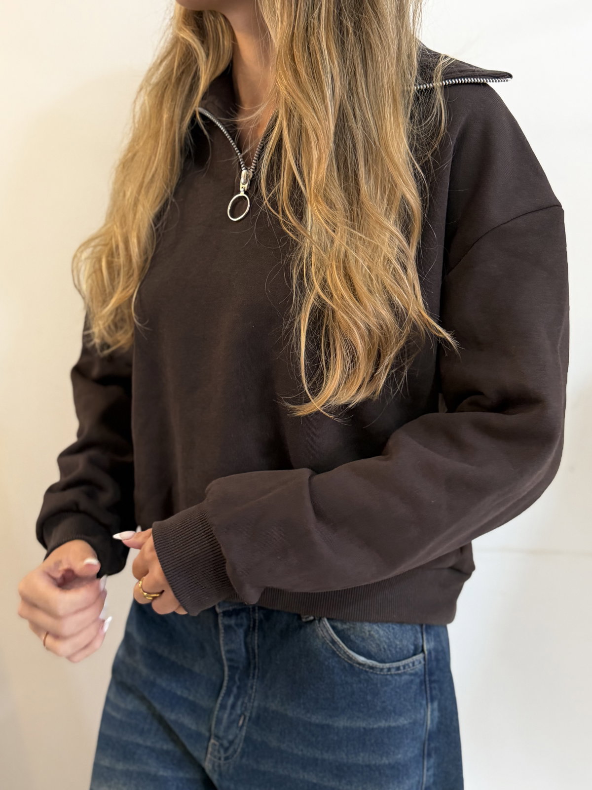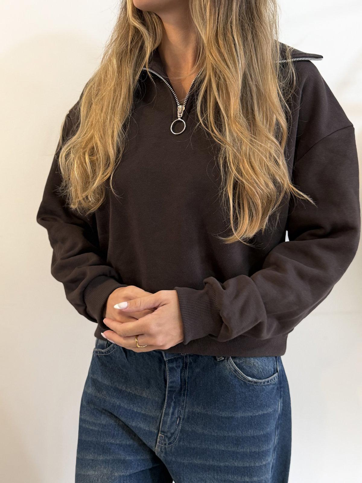Buzo oversize en suave frisa invisible. Modelo con cierre en el delantero superior y terminación con complemento morley.