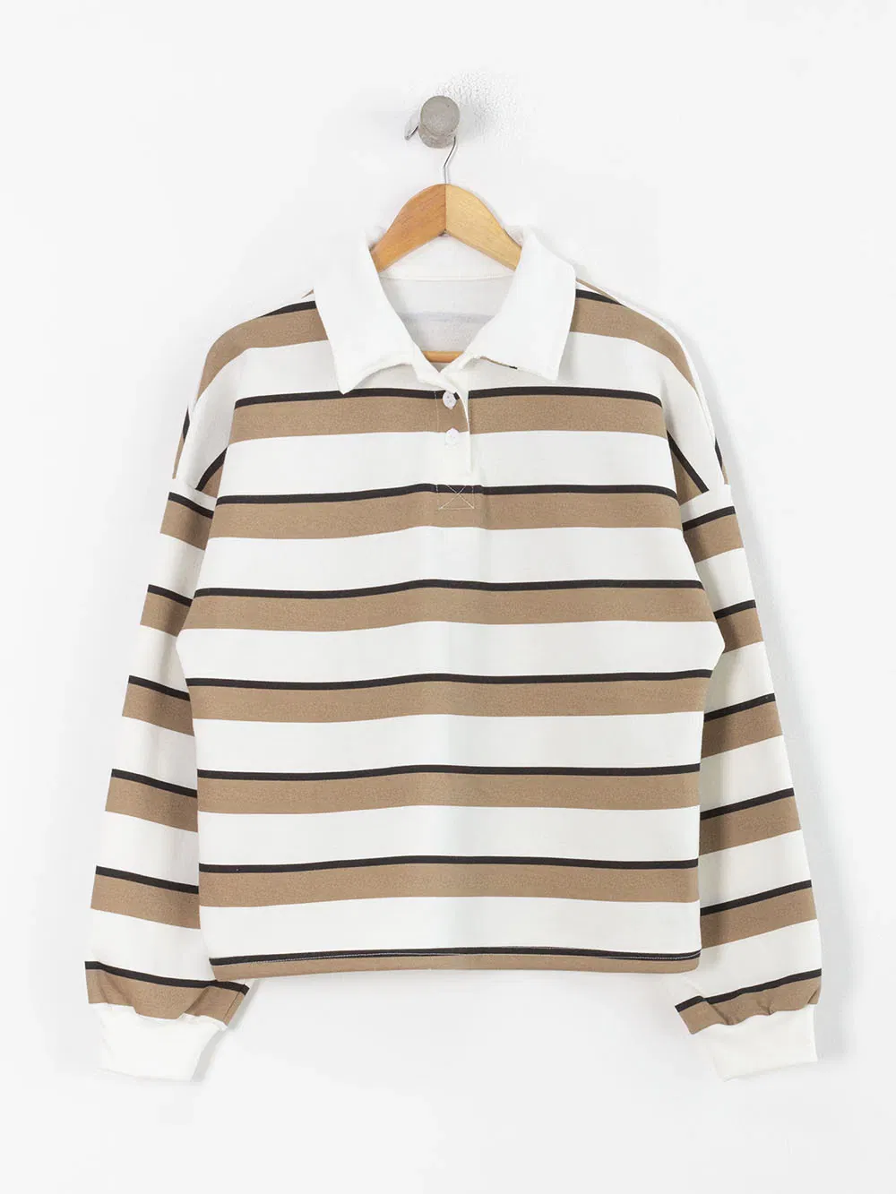 Buzo polo estampado a rayas con cartera de botones de ribb, es frizado :)