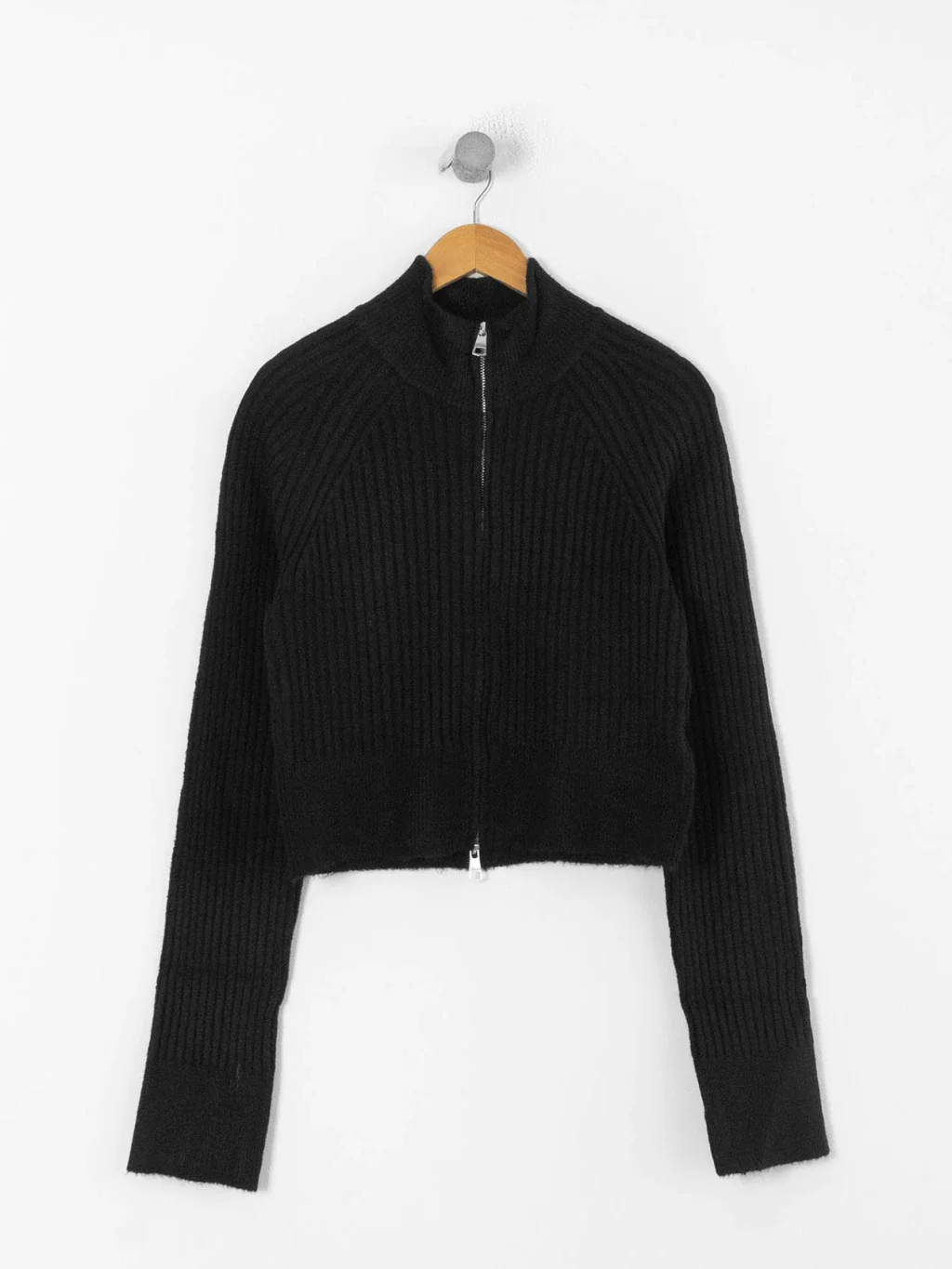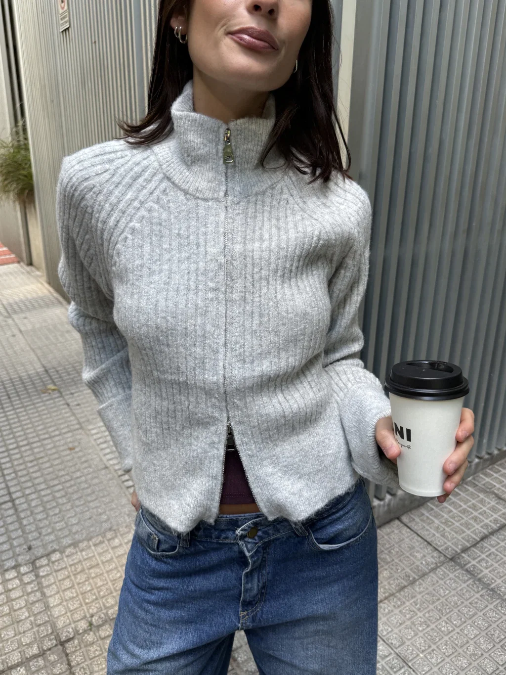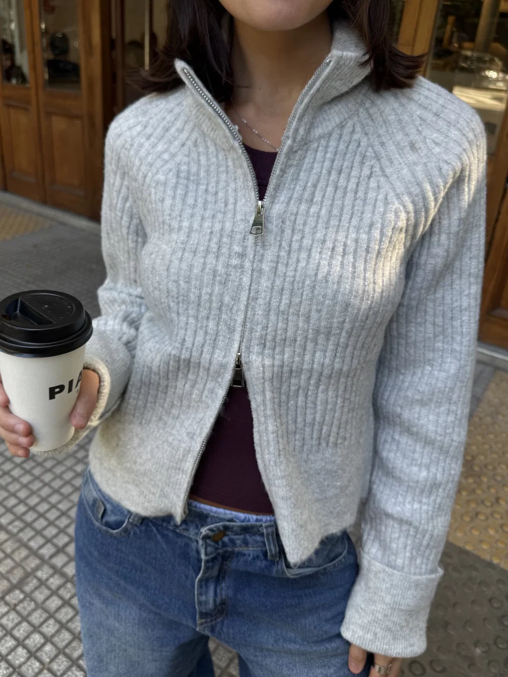 Cardigan liviano hecho con lana para los días más fríos. Posee doble cierre y cuello media polera. Las mangas están hechas más largas para aportar más abrigo.