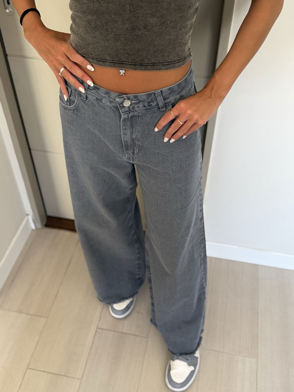 Wide leg gris clasico, ideal para combinar con tus looks de dia y noche :) la modelo usa talle 38 en la foto para que le quede tiro bajo.